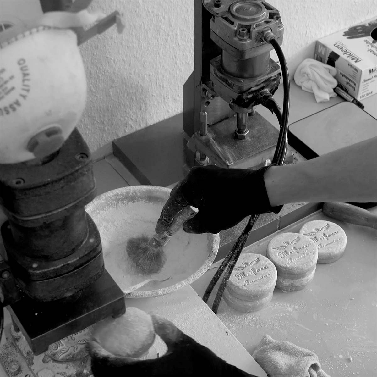 Die Rasierseifen (die auch als Grundlage für die Rasierpasten dienen) werden nach der traditionellen und jahrhundertealten Methode der "Kaltverseifung" hergestellt, bei der die Hitze nicht von außen zugeführt, sondern durch die Reaktion des Kokosöls (mit anderen Ölen aufgeschmolzen) mit der verseifenden Lauge von innen entsteht. Die Siedung erfolgt unter Zusatz von reinem Alpen-Quellwasser in großen Kupferkesseln von Hand. Nach einer mehrwöchigen Reifung, in der die Seife milder und ergiebiger wird, wird sie in Portionen geschnitten und in die endgültige Form mit dem Firmenlogo gepresst und von Hand verpackt. Ein Teil der gereiften Seife wird auch zu den Rasierpasten weiterverarbeitet, in denen weiteres Quellwasser, Tonerden und schützende Fette sowie eine erneute Beduftung für eine weichere Konsistenz und die gleiche Duftintensität wie bei der konzentrierten Seife sorgen. Auch die anderen Produkte von Meissner Tremonia werden unter höchsten Qualitäts- und Hygieneansprüchen von Hand gefertigt, abgefüllt, etikettiert und verpackt.